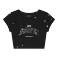 Fully custom baby rib cropped tee with a fitted silhouette and soft black fabric. Features blue star accents across the front and back. Finished with a puff printed Lost In Heaven graphic across the front.